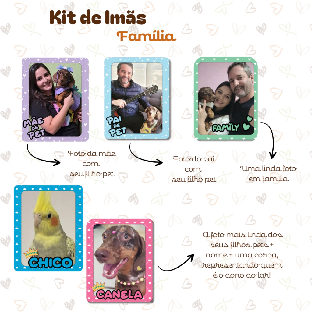 - 2 Imãs "Família": Nada melhor do que celebrar a união e o amor de toda a sua turma. Esses imãs vão destacar o vínculo especial que você compartilha com seus pets, tornando sua geladeira um verdadeiro retrato da sua "família de pets".